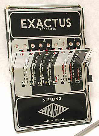 "Addiator"-type Sterling currency calculator, with capacity of £99,999 19s 11 d.